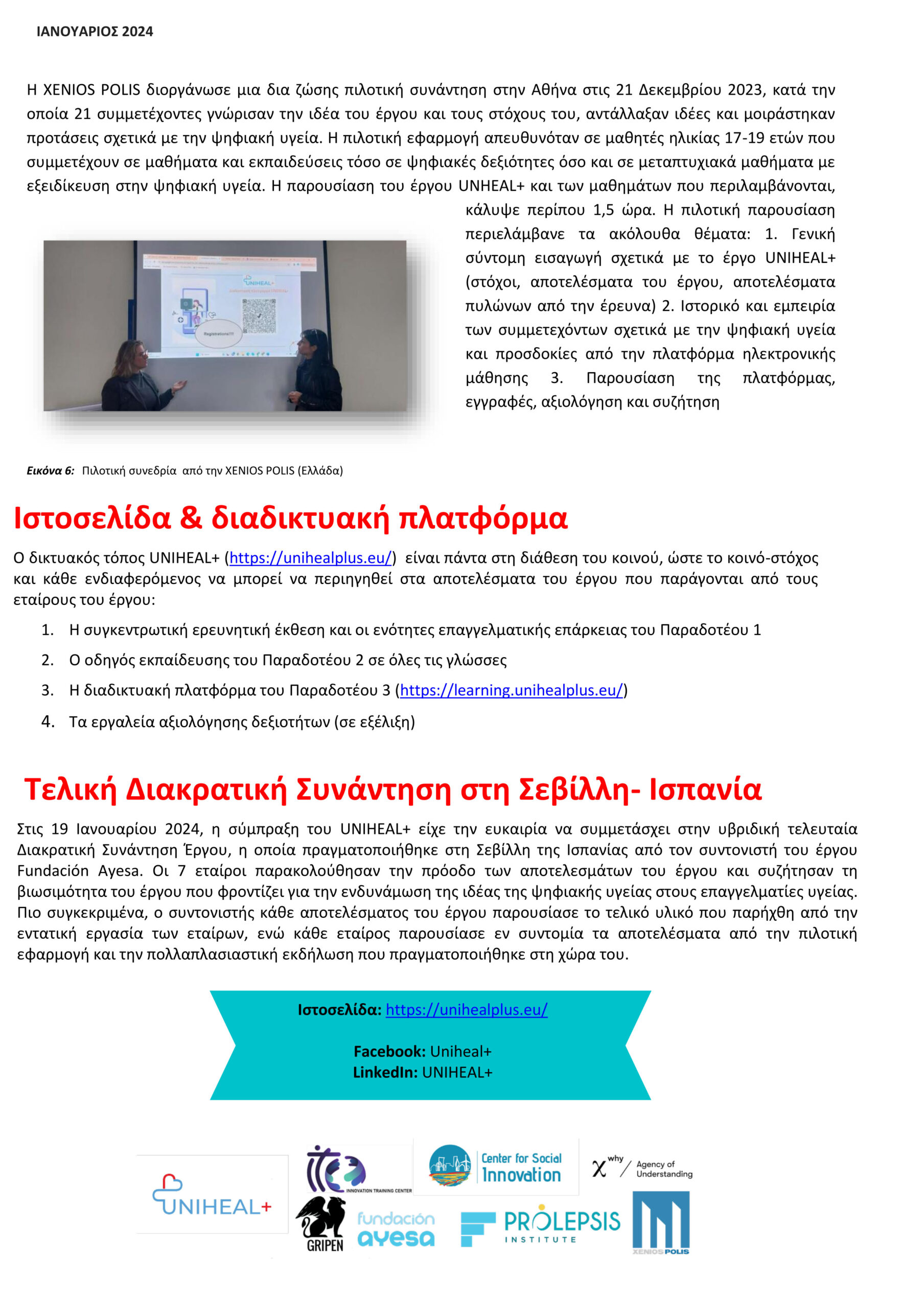 UNIHEAL - Δελτίο Τύπου - Ιανουάριος 2024 - XENIOS POLIS