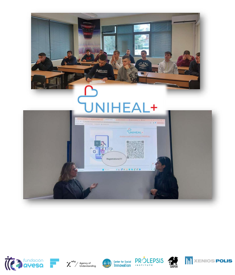 Η ΞΕΝΙΟΣ ΠΟΛΙΣ διοργάνωσε μια δια ζώσης πιλοτική συνάντηση στην Αθήνα στις 21 Δεκεμβρίου 2023, κατά την οποία 21 συμμετέχοντες γνώρισαν την ιδέα του έργου και τους στόχους του, αντάλλαξαν ιδέες και μοιράστηκαν προτάσεις σχετικά με την ψηφιακή υγεία. Η πιλοτική εφαρμογή απευθυνόταν σε μαθητές ηλικίας 17-19 ετών που συμμετέχουν σε μαθήματα και εκπαιδεύσεις τόσο σε ψηφιακές δεξιότητες όσο και σε μεταπτυχιακά μαθήματα με εξειδίκευση στην ψηφιακή υγεία. Η παρουσίαση του έργου UNHEAL+ και των μαθημάτων που περιλαμβάνονται, διήρκεσε περίπου 1,5 ώρα. Το πιλοτικό περιέλαβε τα παρακάτω θέματα: