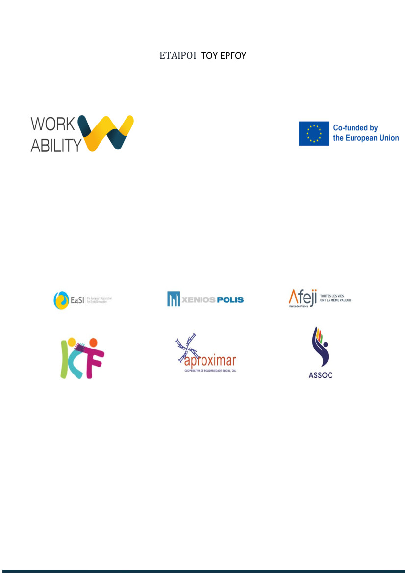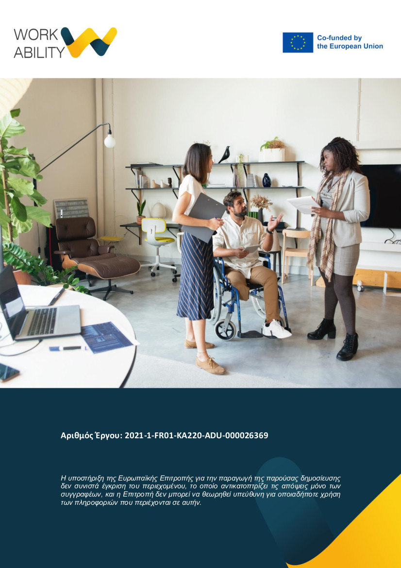 Το παρόν ενημερωτικό δελτίο εκπονήθηκε στο πλαίσιο του έργου “WorkAbility“, Grant Agreement no. 2021-1-FR01-KA220-ADU-000026369, που υλοποιήθηκε με την οικονομική υποστήριξη της Ευρωπαϊκής Ένωσης. Χρηματοδοτείται από την Ευρωπαϊκή Ένωση. Ωστόσο, οι απόψεις και οι γνώμες που εκφράζονται είναι αποκλειστικά και μόνο του/της συγγραφέα και δεν αντικατοπτρίζουν κατ’ ανάγκη τις απόψεις και τις γνώμες της Ευρωπαϊκής Ένωσης ή του Ευρωπαϊκού Εκτελεστικού Οργανισμού Εκπαίδευσης και Πολιτισμού (EACEA). Ούτε η Ευρωπαϊκή Ένωση ούτε ο EACEA μπορούν να θεωρηθούν υπεύθυνοι γι’ αυτές.