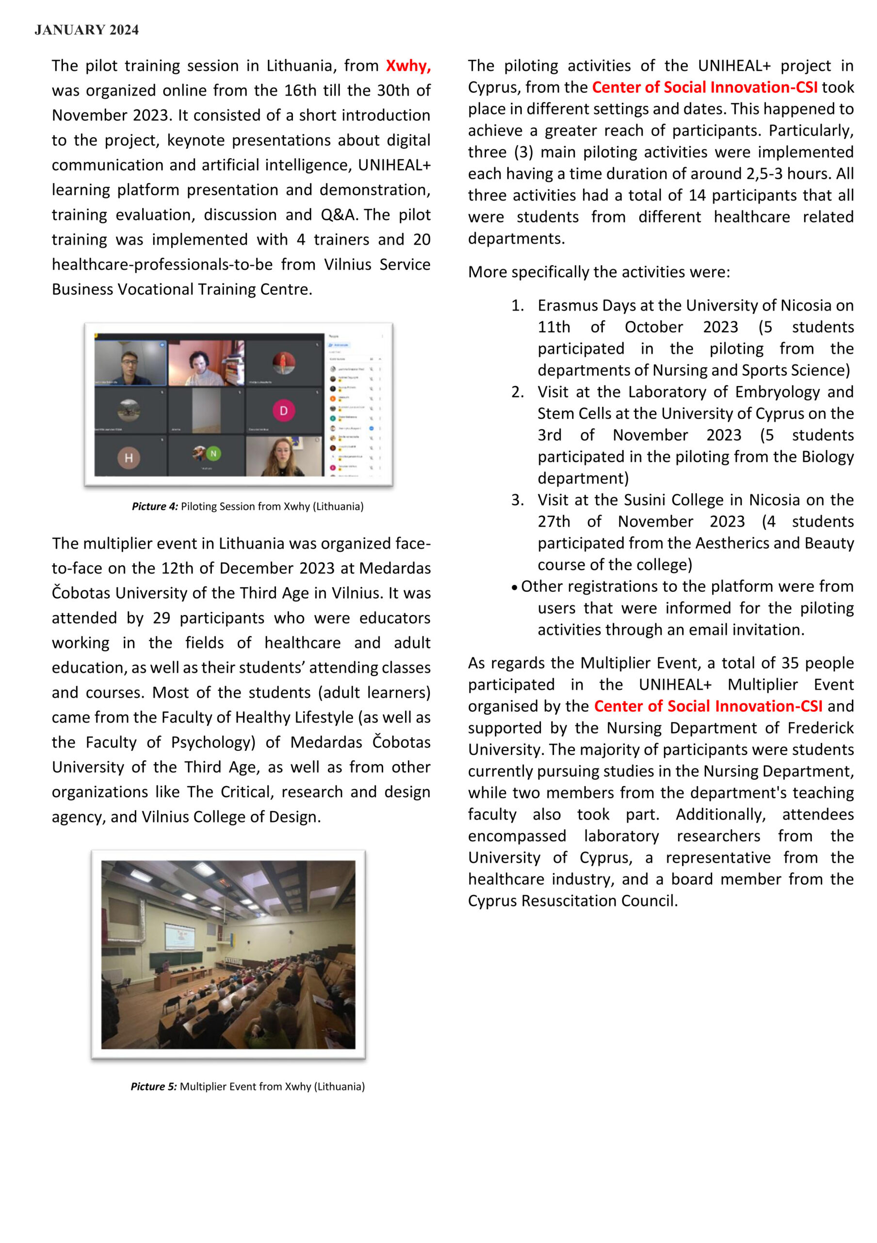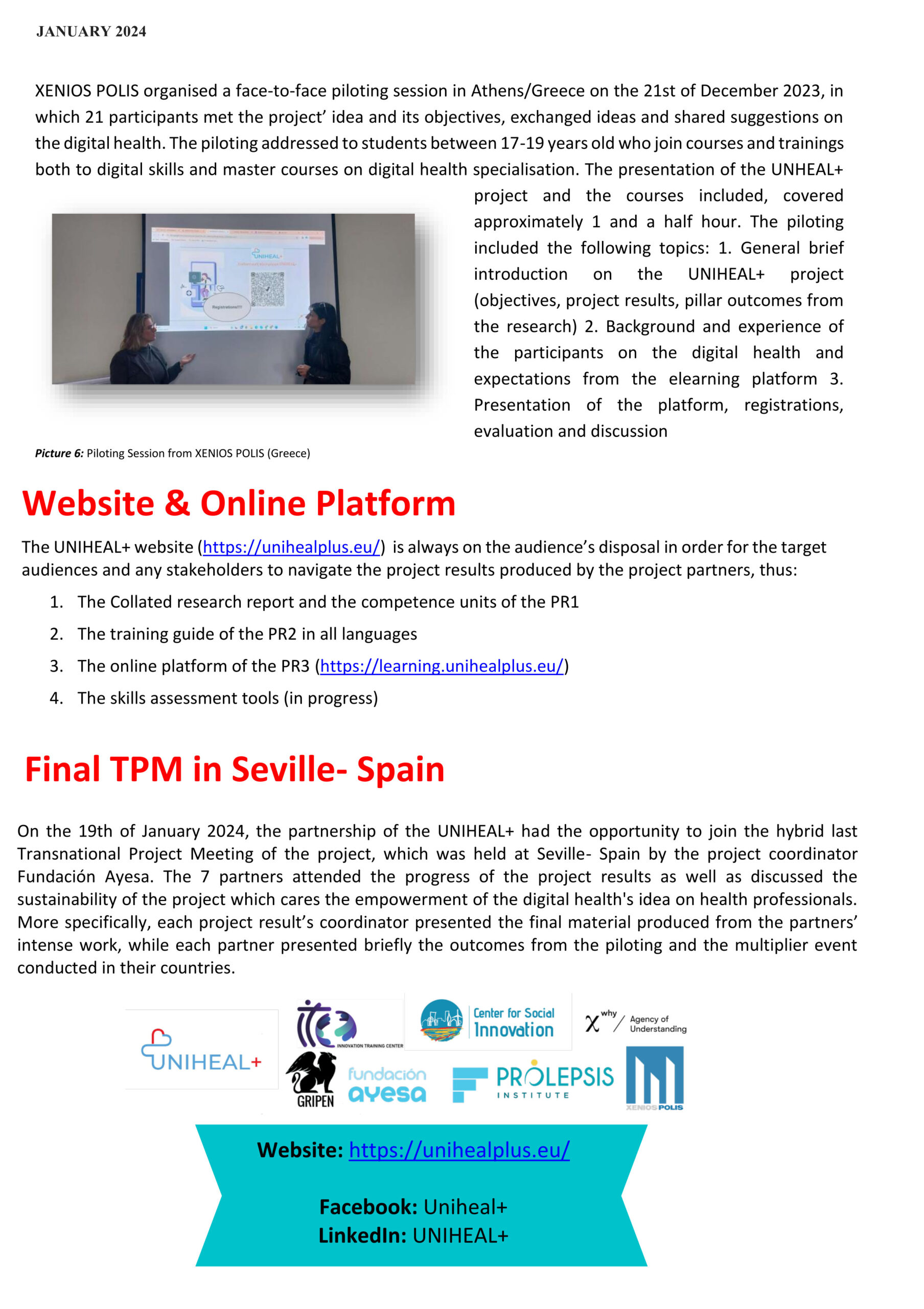 UNIHEAL - NEWSLETTER - January 2024 - XENIOS POLIS